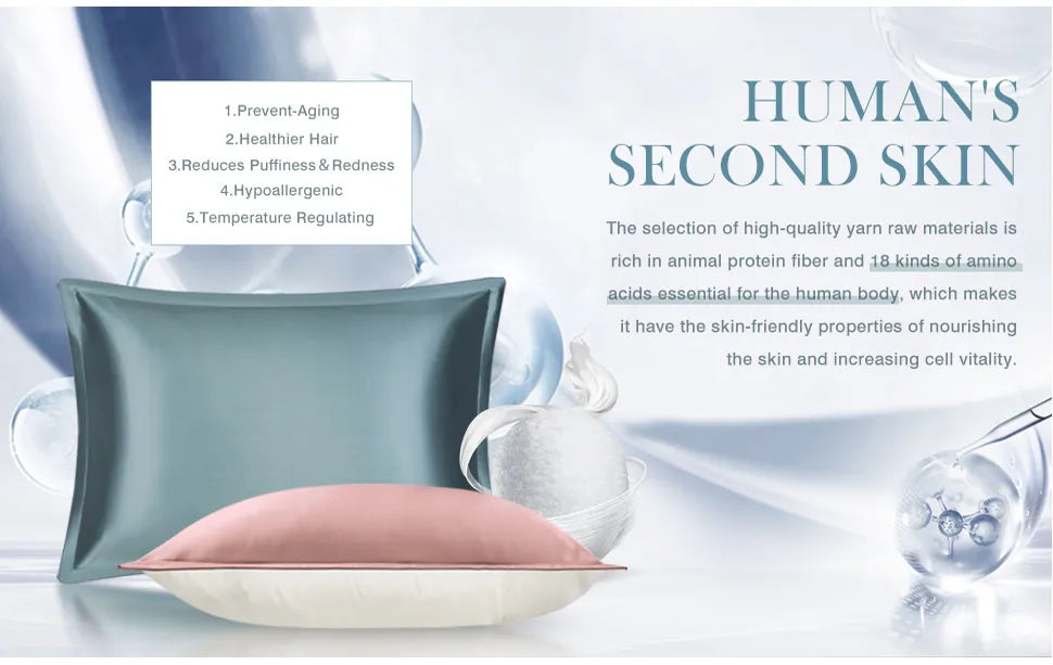100% Naturlig Mulberry Silke Pudebetræk - Forside i Ren Silke & Bagside i Åndbar Lyocell Fiber