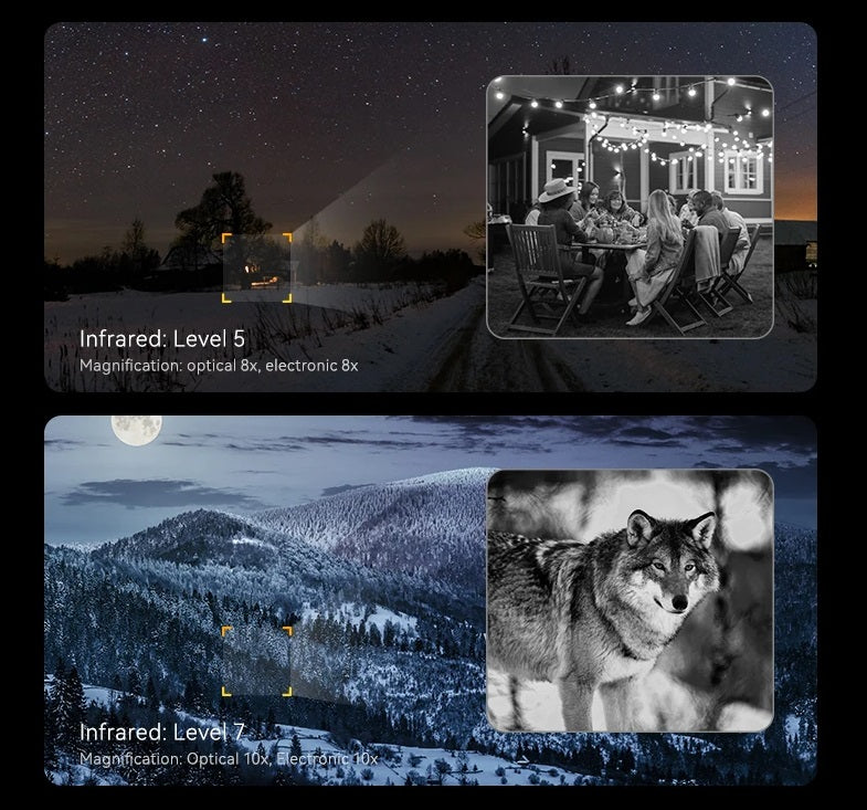 - Rækkevidde i fuldt mørke: Se op til 800 meter i totalt mørke – ideelt til natteaktiviteter.