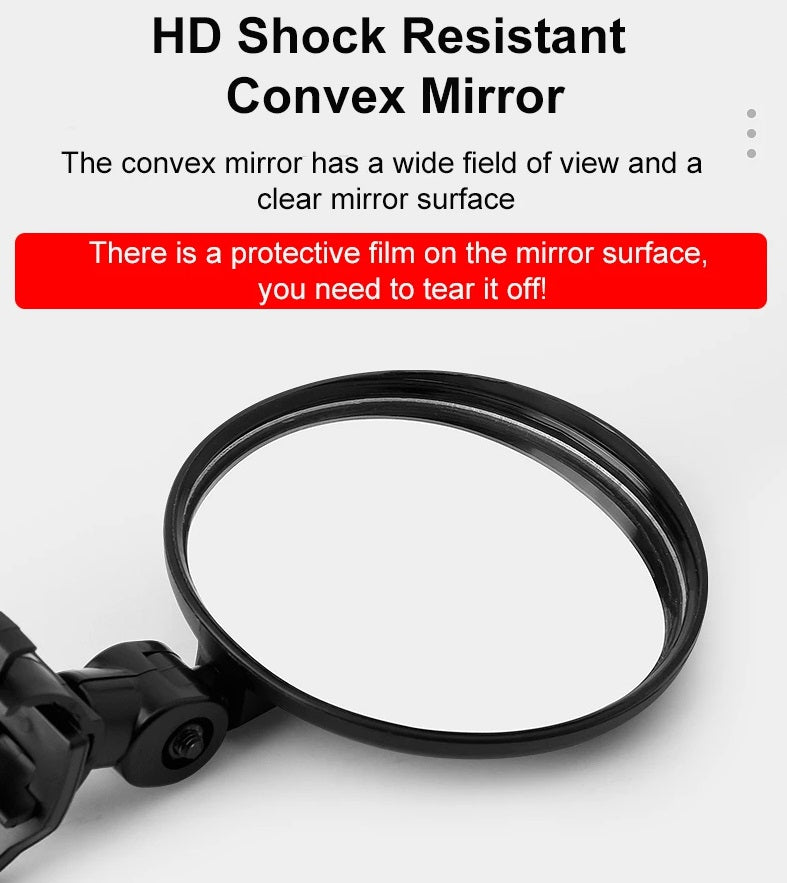 - Vidvinkel: Konvekst spejldesign giver et bredere synsfelt med minimal forvrængning for øget sikkerhed under cykling.
