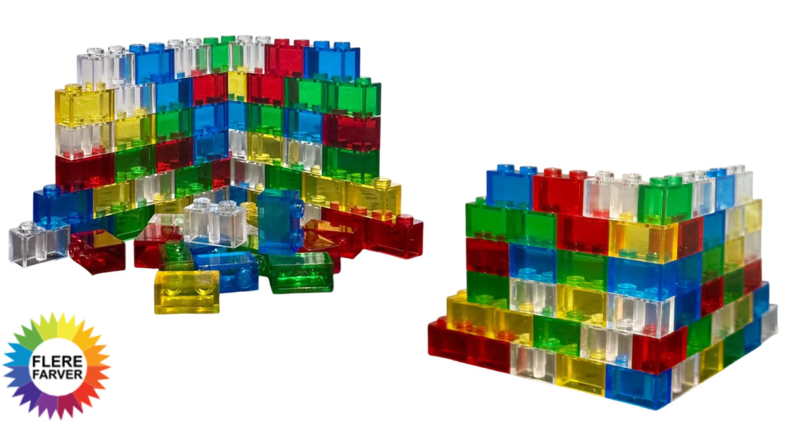 - 40 stykker pr. pose: Indeholder små 1×2 gennemsigtige byggeklodser