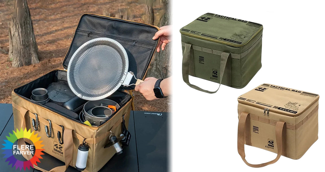 - Stor kapacitet (42 l): Opbevar en række forskellige ting, herunder gasflasker, campinglygter, køkkengrej og meget mere. Inkluderer en netlomme med lynlås for effektiv organisering.