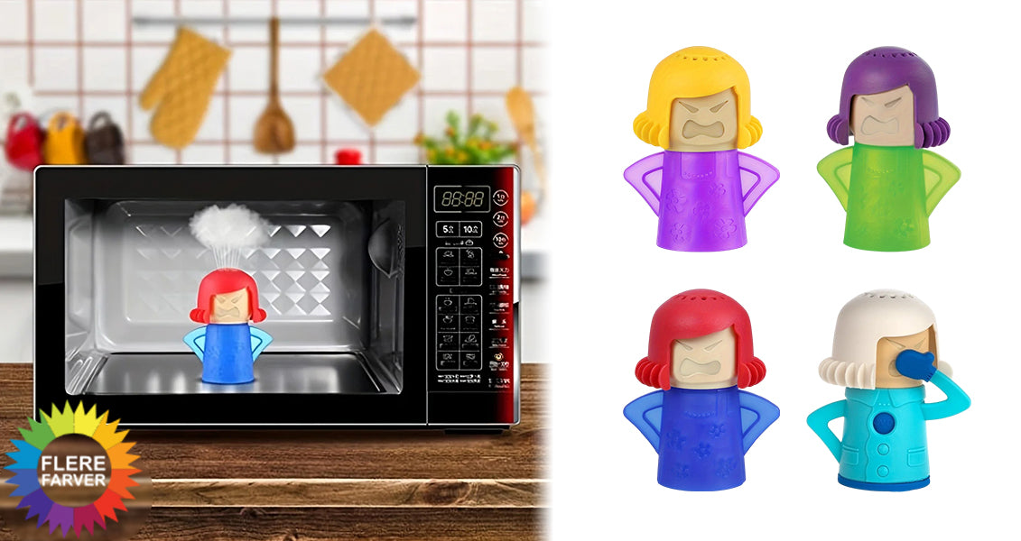 - Sjov og nem at bruge: Tilsæt blot eddike og vand, sæt den i mikrobølgeovnen, og se “Angry Mama” frigive damp for ubesværet rengøring.