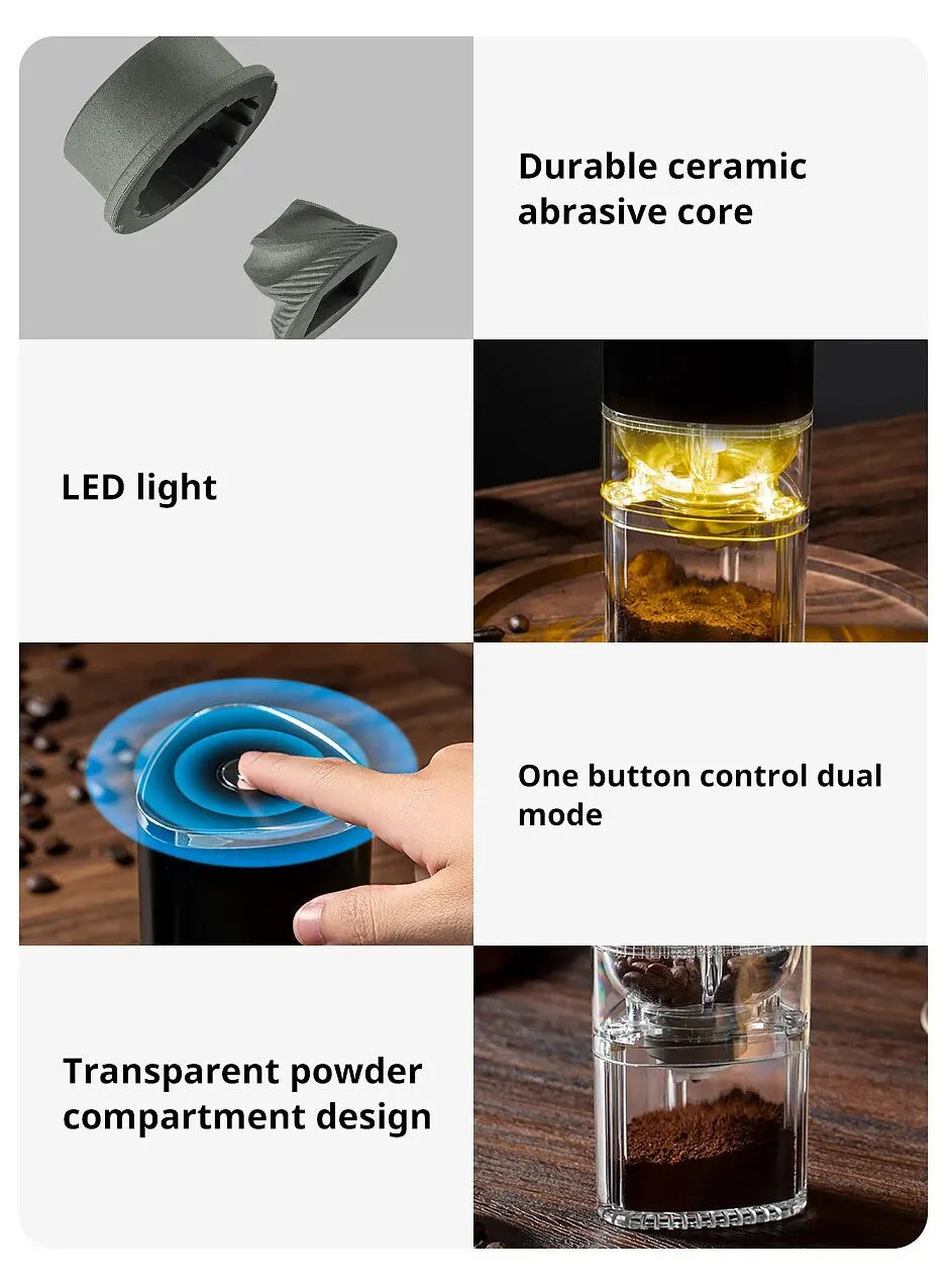- Frisk kaffe når som helst: Mal dine kaffebønner på stedet for den mest friske smag, uanset hvor du er.