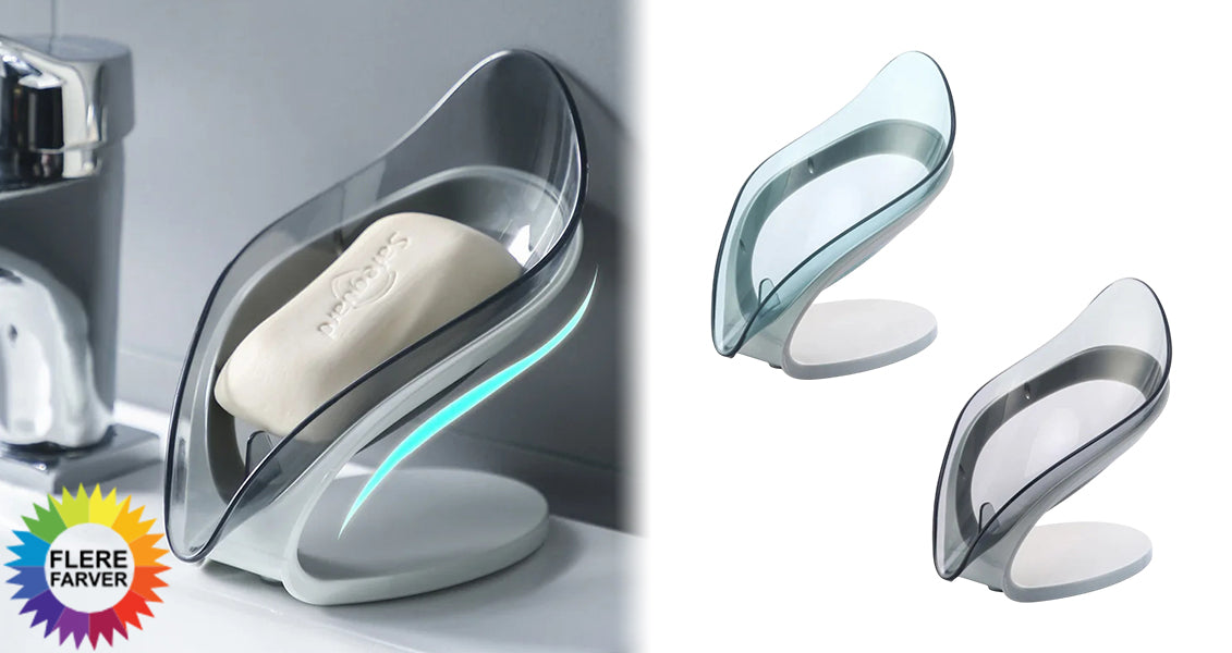 - Automatisk afløb: Vandet løber hurtigt ned i vasken og holder sæben tør og ren.