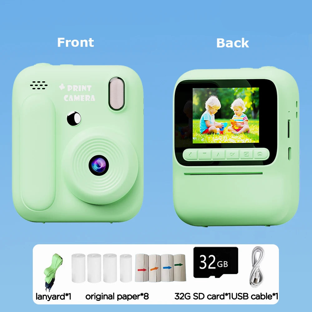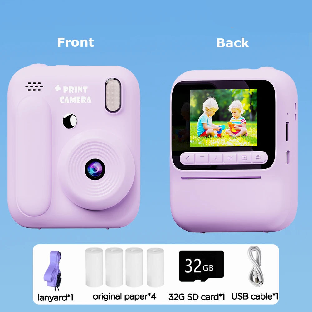 - Børne-øjeblikskamera: Optag fotos og videoer med 32 GB lagerplads og 1080P-optagelse.