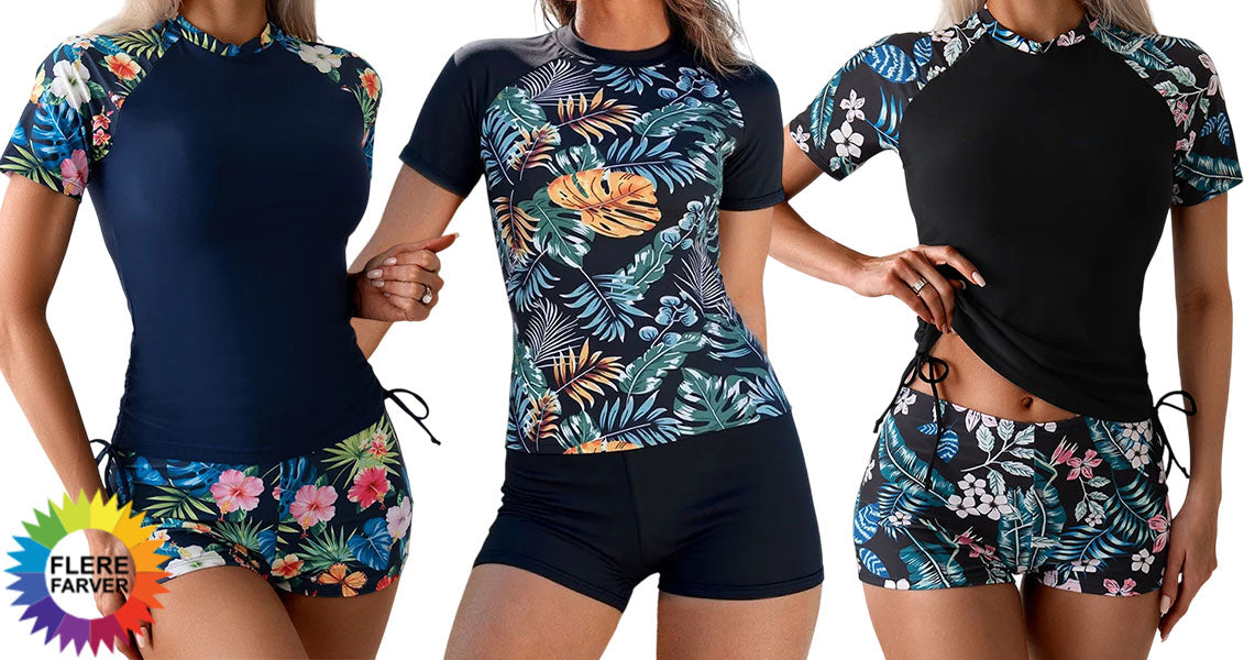 - 2-delt surfing badedragtsæt: Stilfuld kortærmet top med matchende bund for et sporty og komfortabelt strandlook.