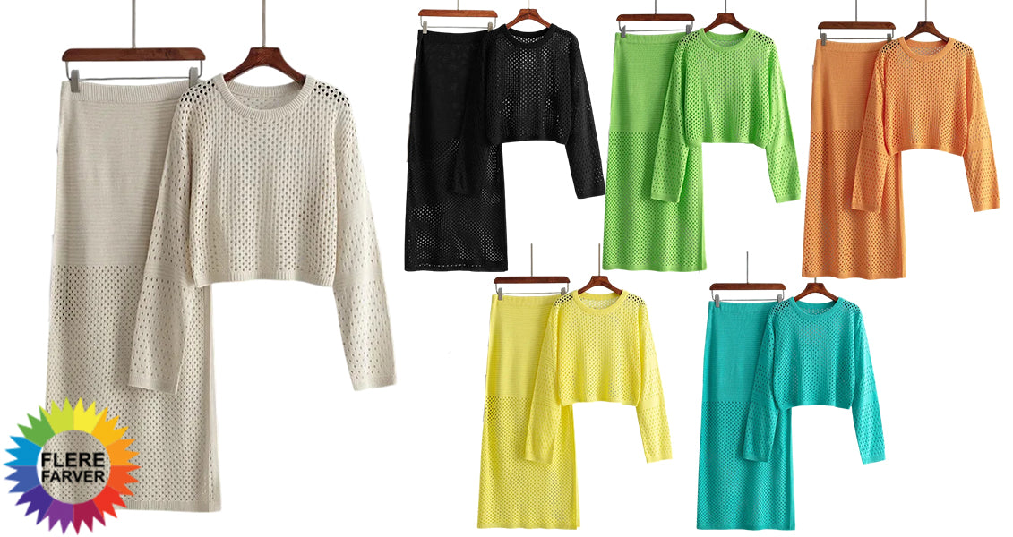 Dame Striktrøje og Nederdel Sæt