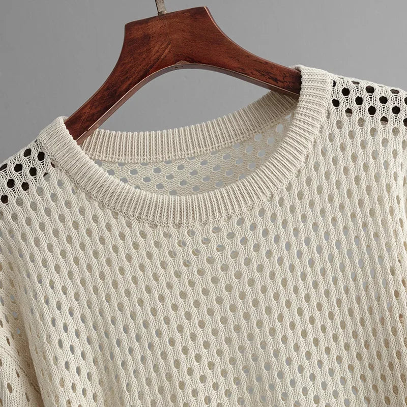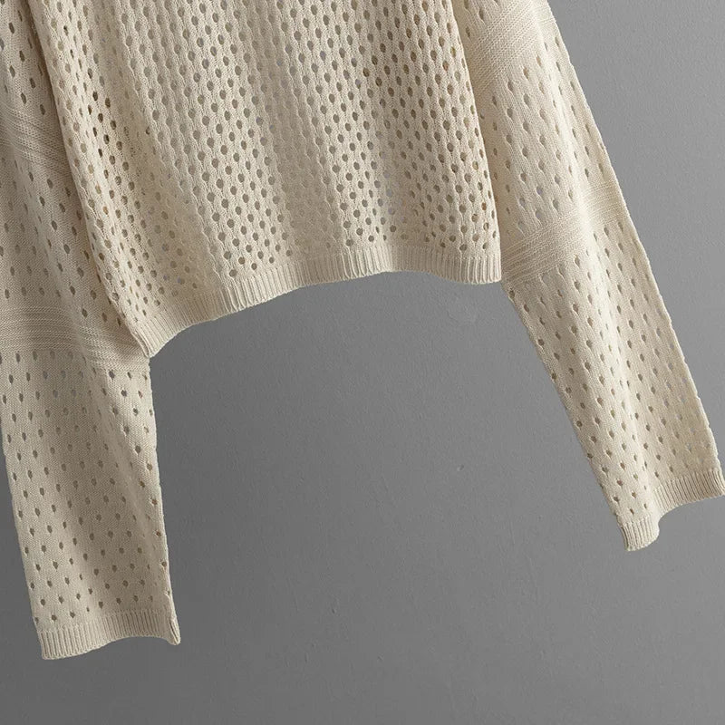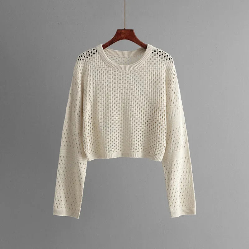 - Trendy design: Pullover med O-hals, cropped længde og udhulede detaljer for et moderne touch.