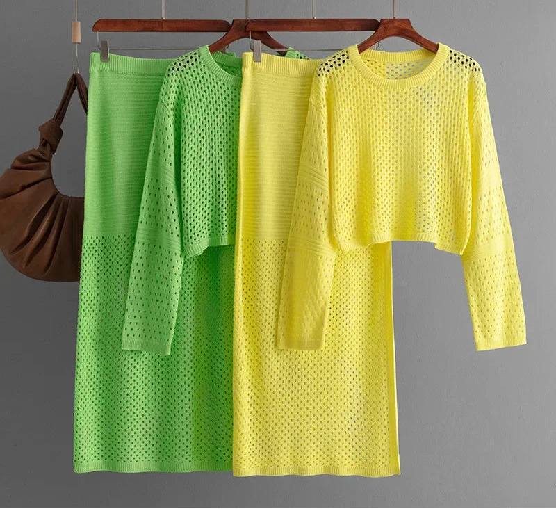 - Stilfuldt 2-delt sæt: Inkluderer en striktrøje og en højtaljet nederdel for et koordineret look.