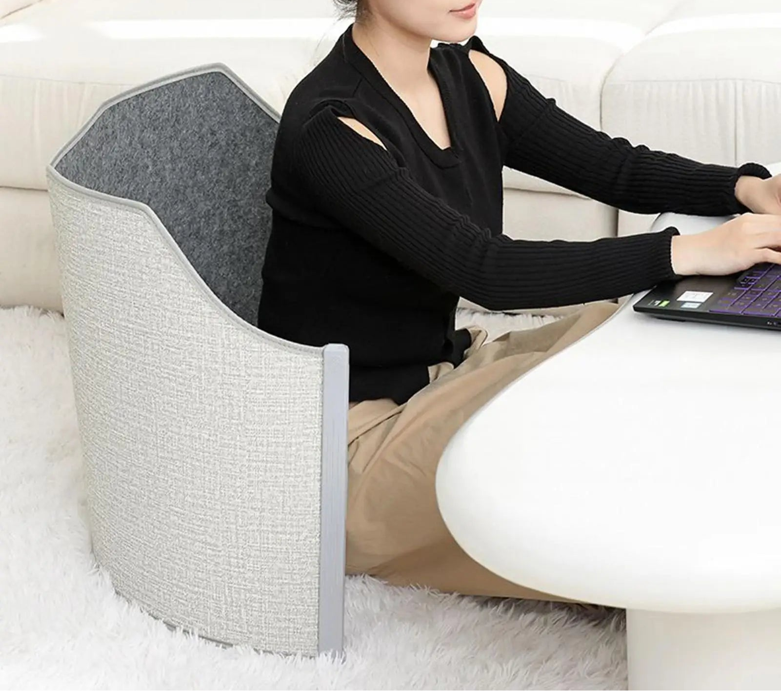 - Ergonomisk benomslag: Giver behagelig støtte og hjælper med at reducere muskelspændinger under lange perioder med at sidde ned.
