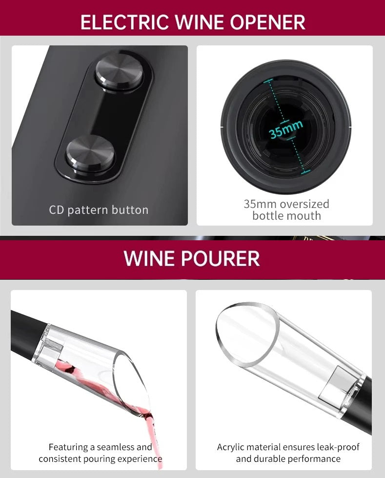 - Automatisk vinåbner: Fjern proppen hurtigt og nemt med ét tryk