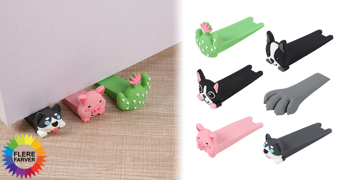 Genanvendelig Silikone Dørkile med Tegneserie-Design - Vælg mellem 1 stk., 3 stk. eller 6 stk.