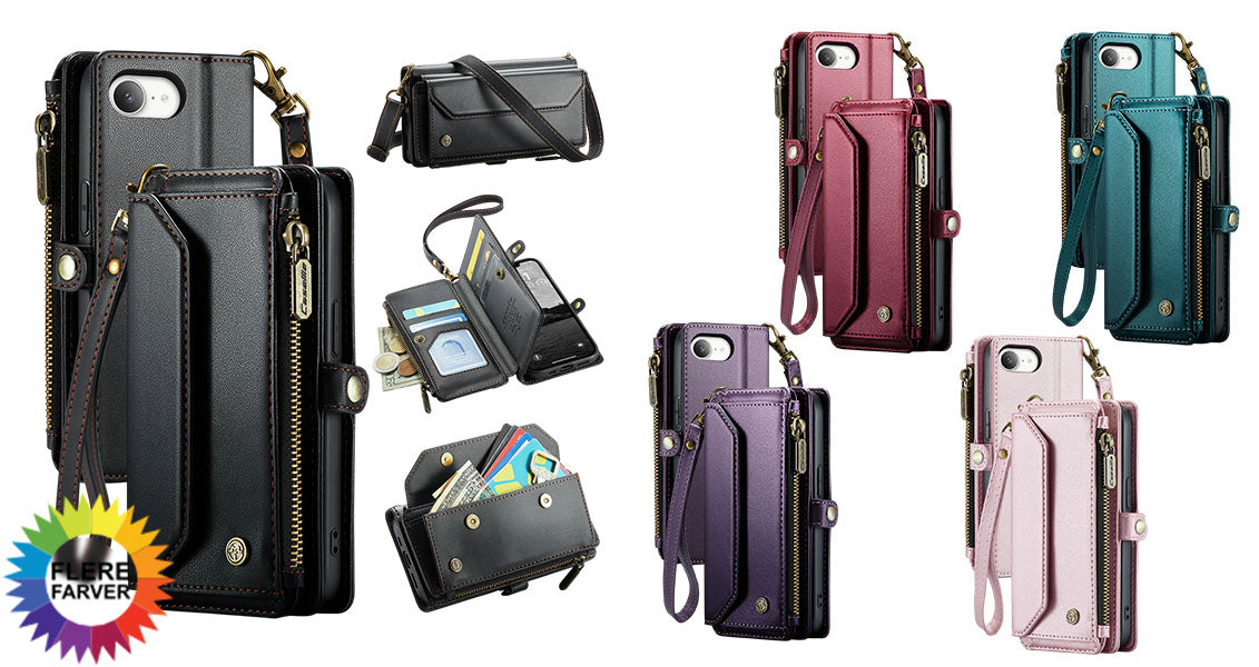- Alt-i-et-design: Telefoncover, pung og håndledsrem samlet i ét kompakt cover