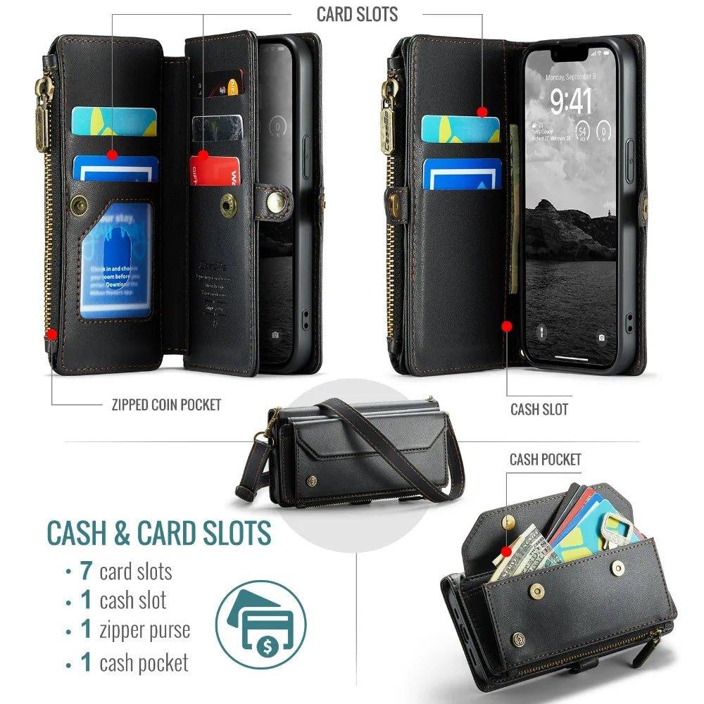iPhone-pung med Rem, Lynlås og Kortholder