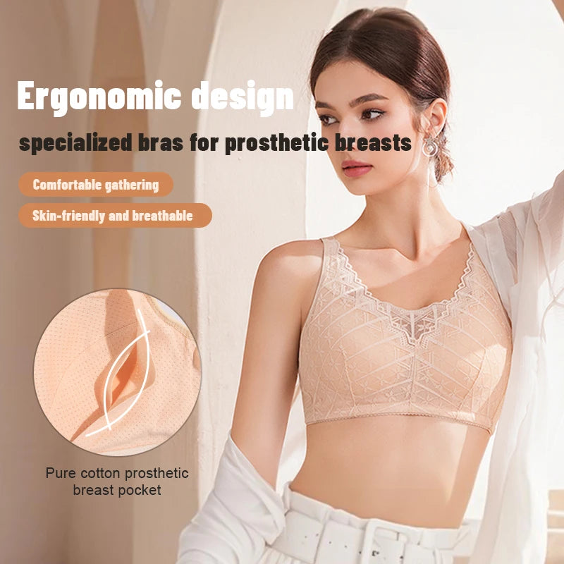 Justerbar Bomulds Mastektomi Bh med Lomme