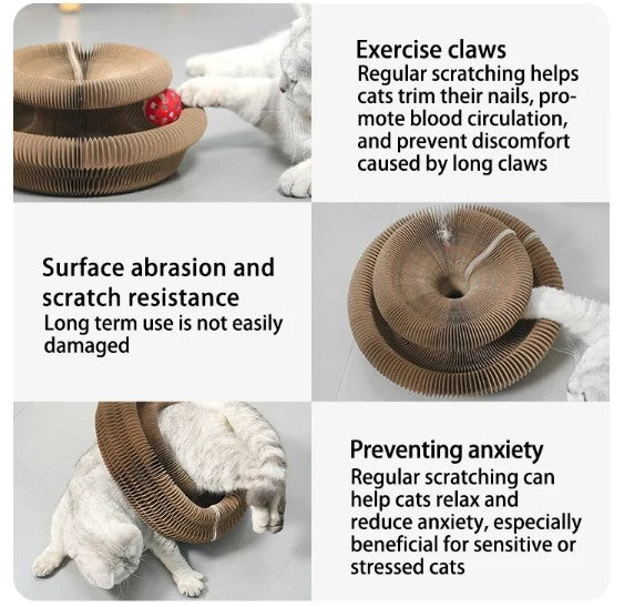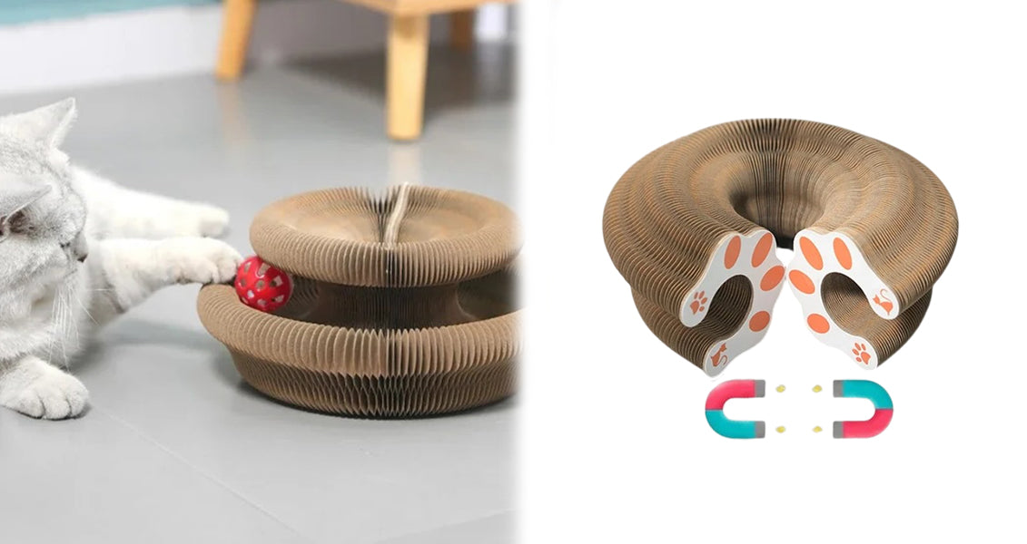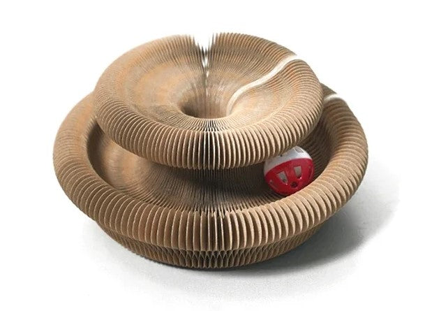 - Kløpleje: Bølgepapoverfladen hjælper med at slibe kløer og beskytte møbler.