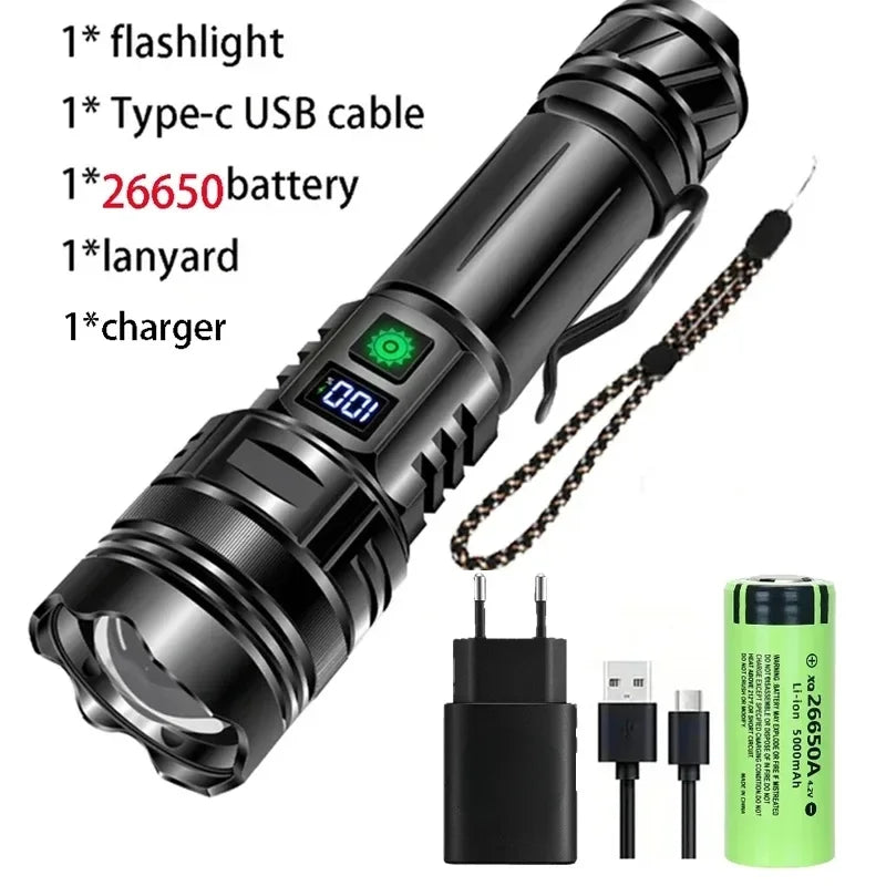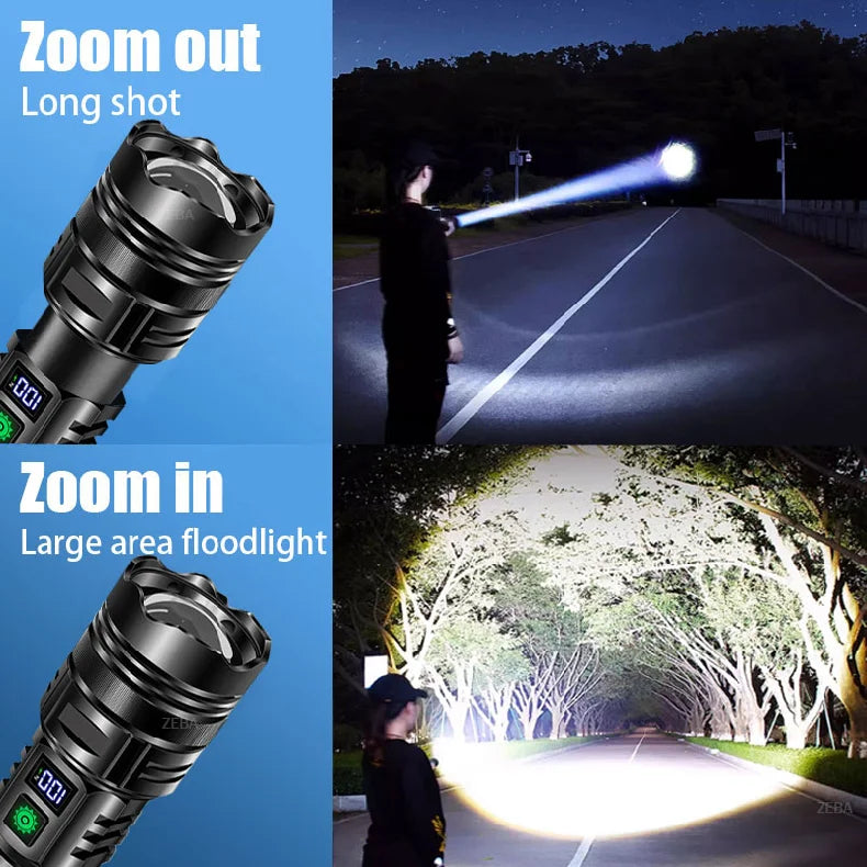 - Kraftigt LED-lys: Høj lysstyrke til udendørs brug og nødsituationer