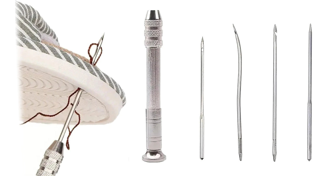 - Komplet lædersysæt: Indeholder en sølvfarvet lædersyl og 4 metalnåle, perfekt til læder, lærred, telte, sko, tasker og meget mere.