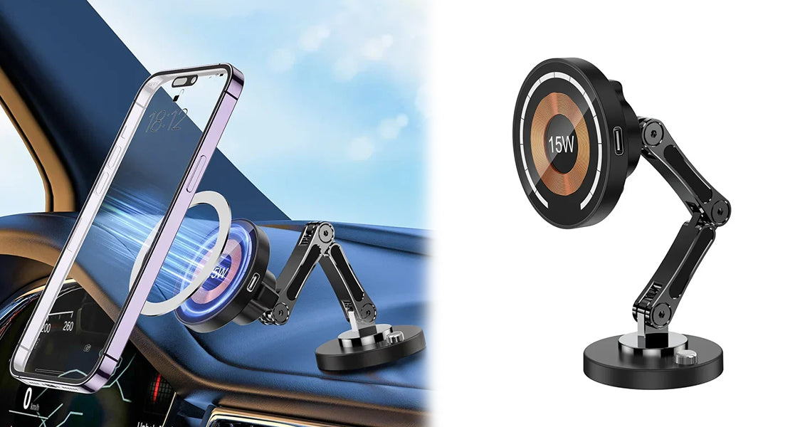 - Stærkt magnetisk greb: Kraftig magnet holder din telefon sikkert på plads, forhindrer glidning og sikrer stabil opladning.