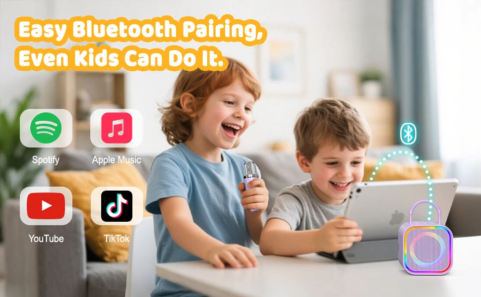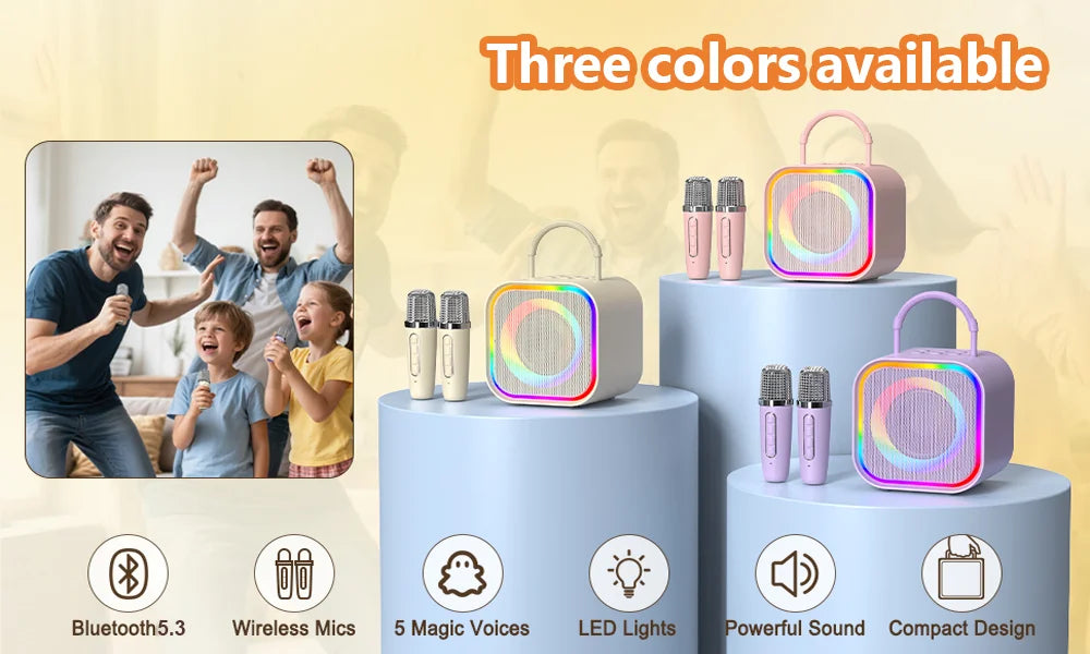Mini Bluetooth Karaoke Højttaler til Børn med 2 Mikrofoner