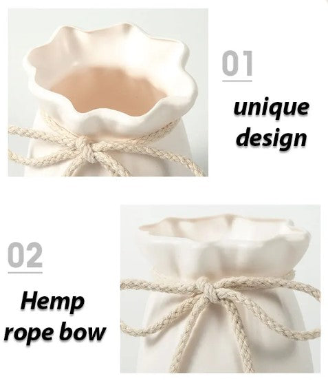 - Elegant sløjfedesign: Moderne vase i nordisk stil, der tilføjer et stilfuldt præg til ethvert rum.