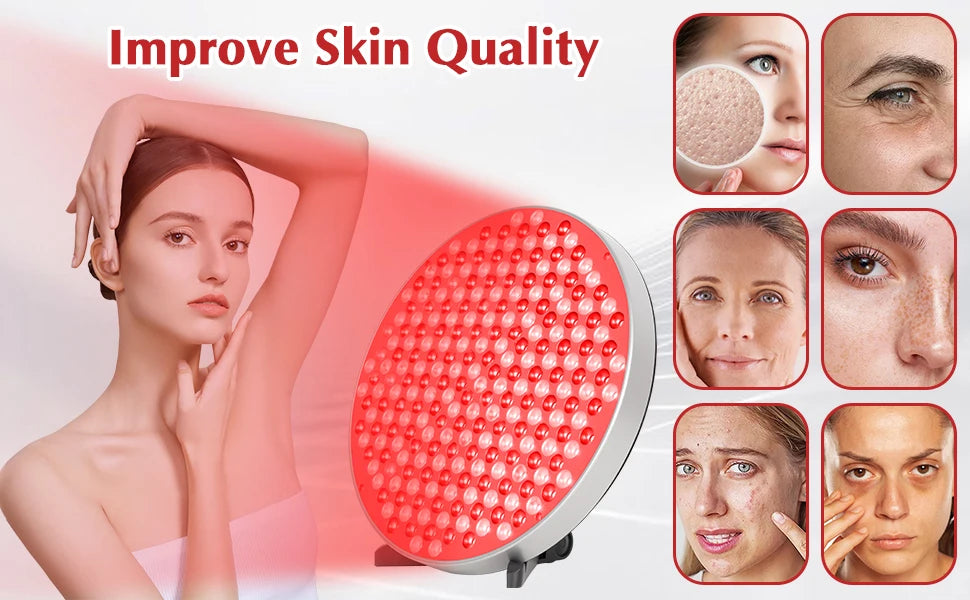 - Dobbeltbølgelængdeterapi: 660 nm rødt lys + 850 nm nærinfrarødt lys til dybdegående krops- og hudpleje