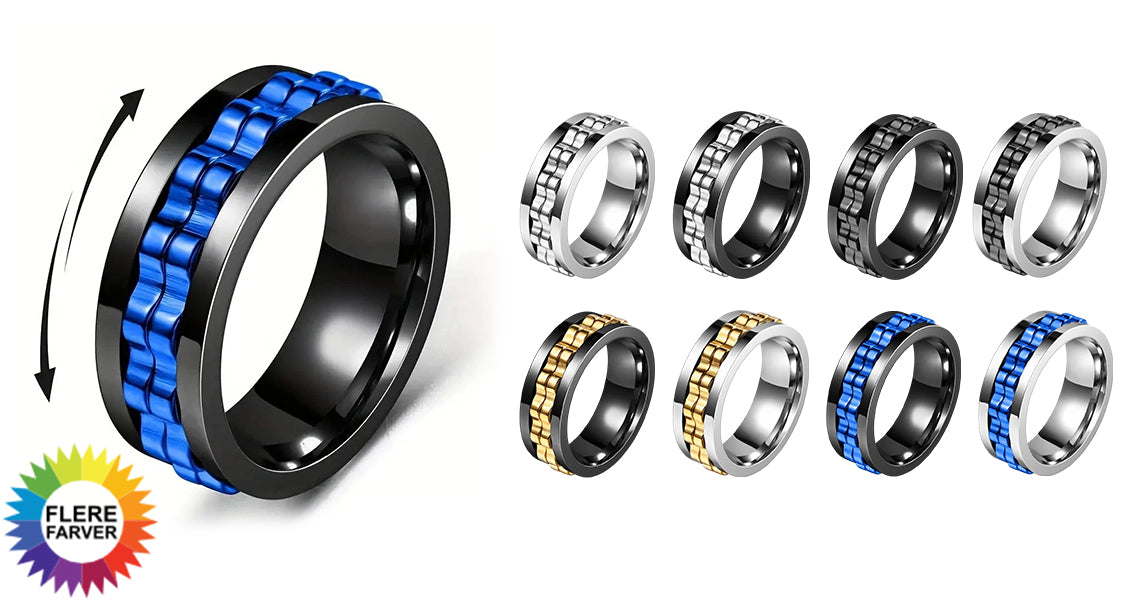 - Stilfuld anti-stress ring: Roterende gearkæde giver beroligende og fokuserende bevægelse