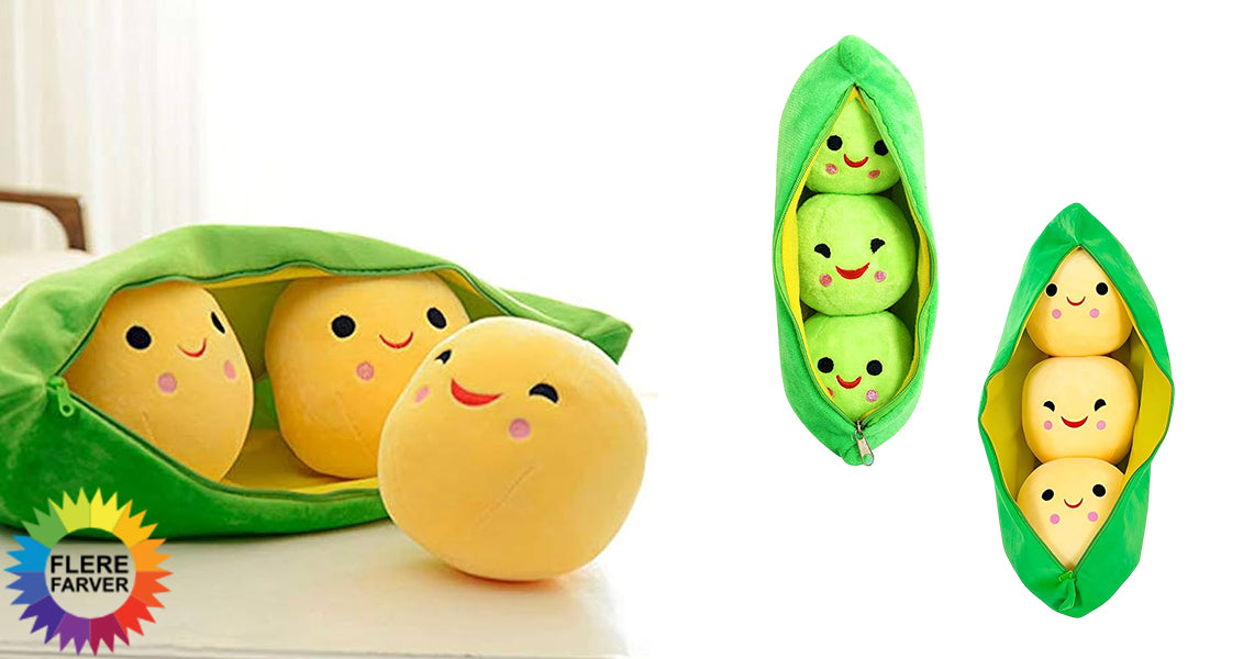 - Sød ærtebamse: 25 cm plysdyr formet som en nuttet ærtebælg, perfekt til børn der elsker bløde bamser.