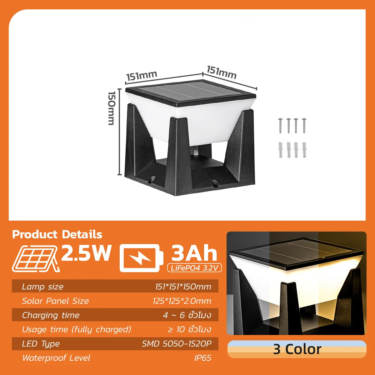 Solcellelampe – Firkantet LED-Lampe til Have og Sti