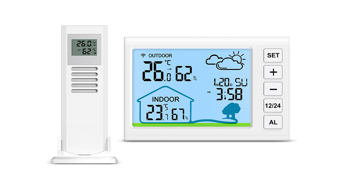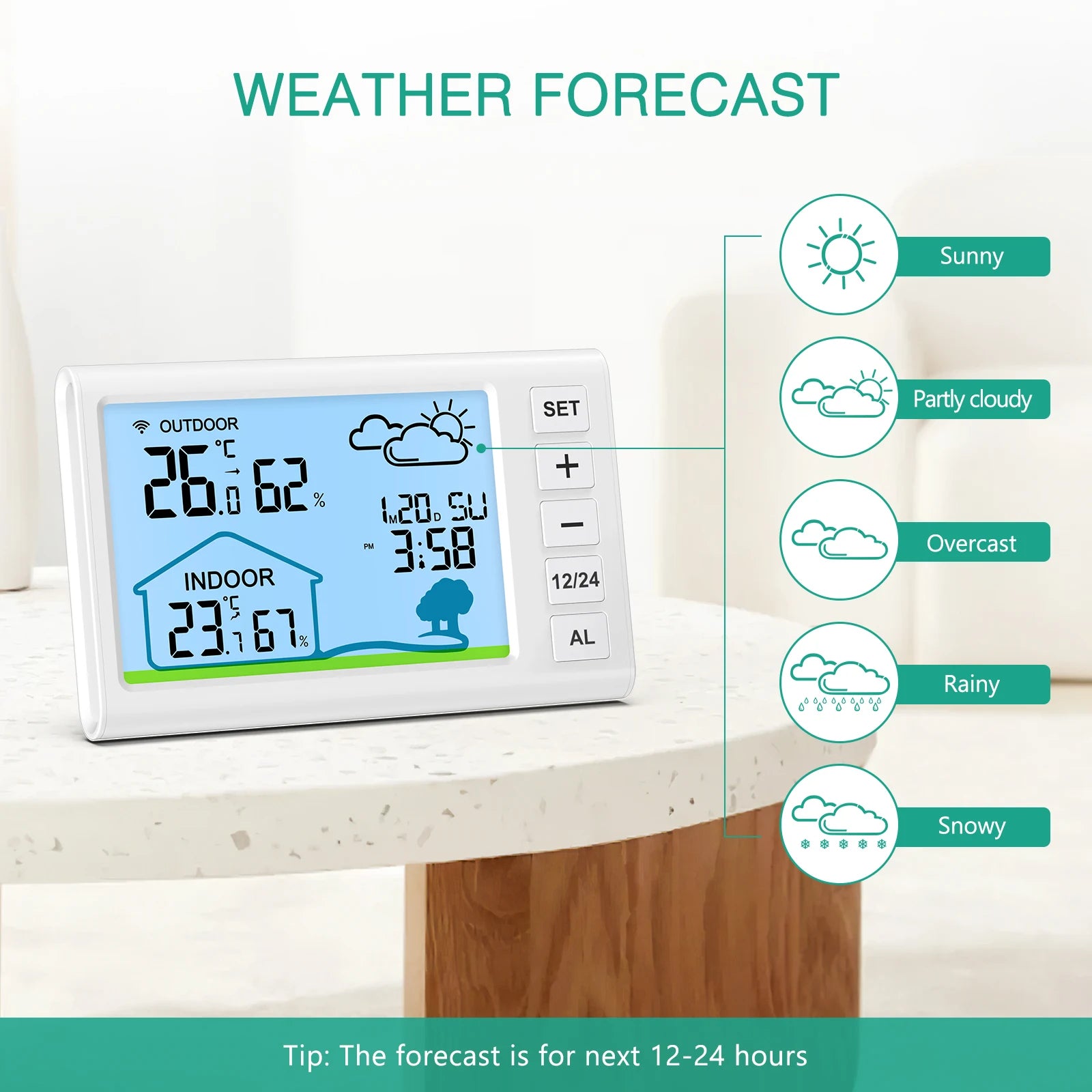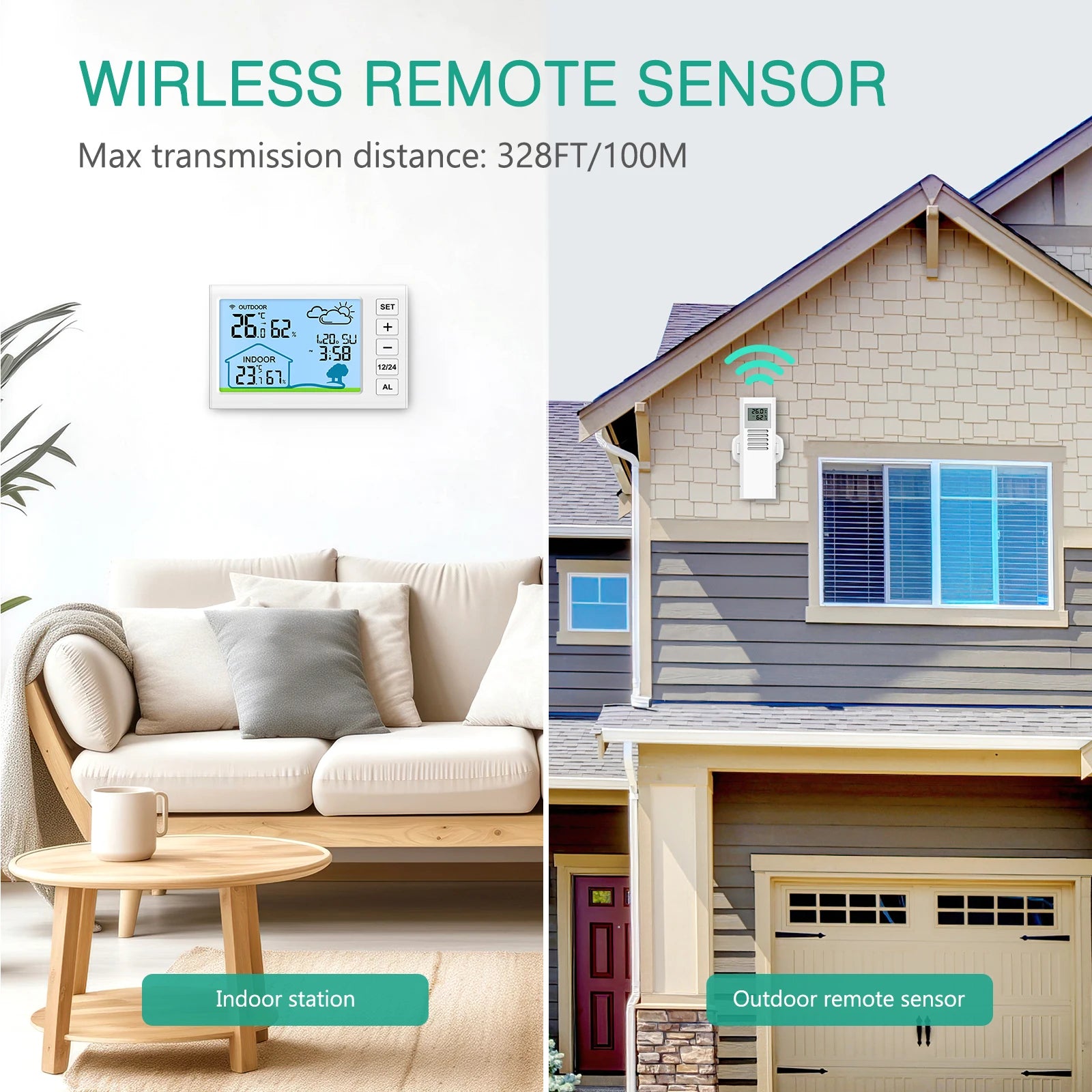 - Bredt måleområde: Indendørs: -9,9℃ til 50℃ / 14℉ til 122℉; Udendørs: -50℃ til 70℃ / -58℉ til 158℉; Luftfugtighed: 20%–95%.