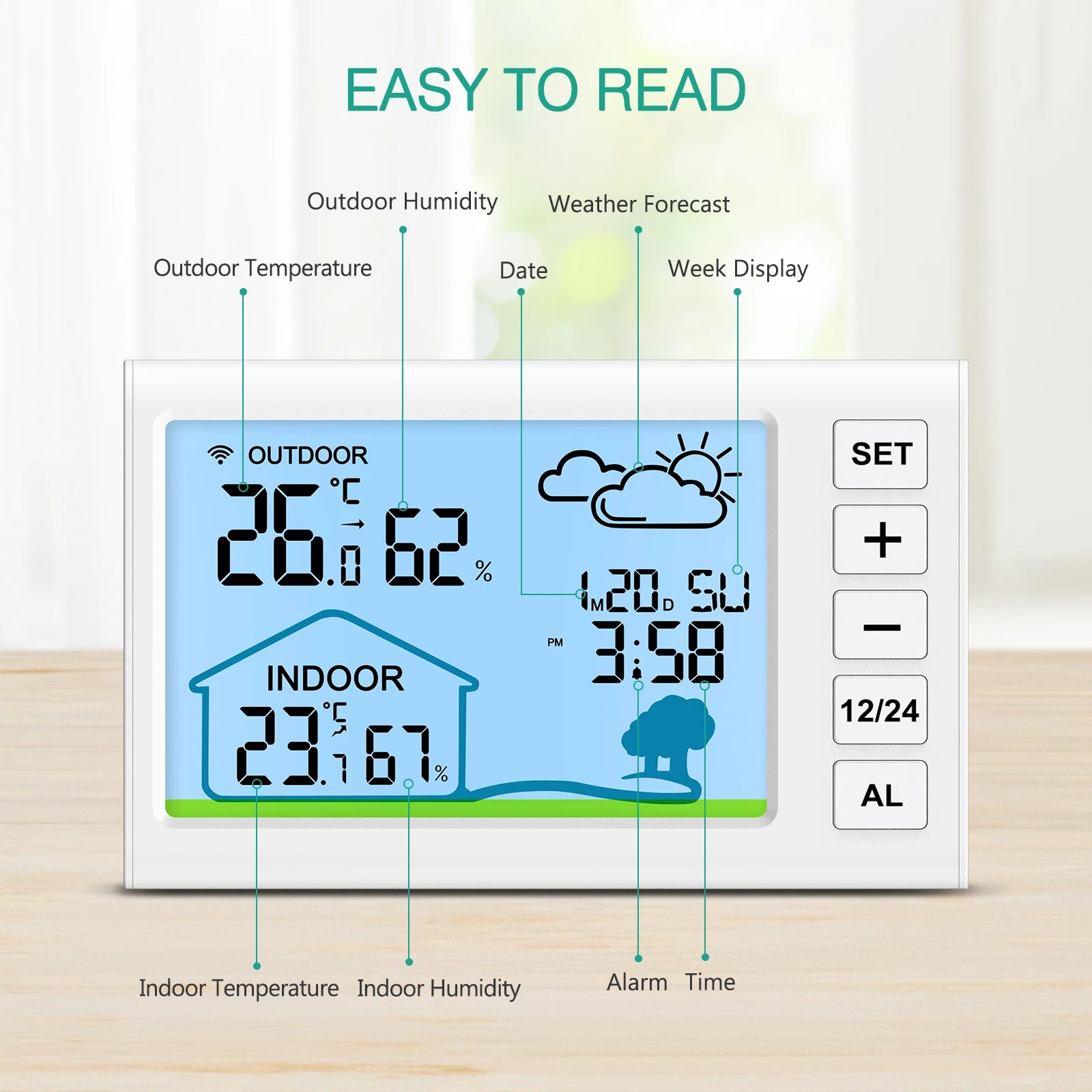 Trådløs Indendørs Udendørs Vejrstation med Ur