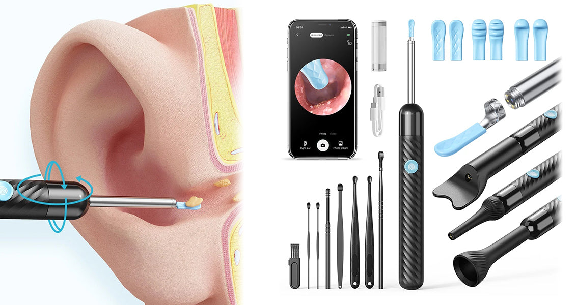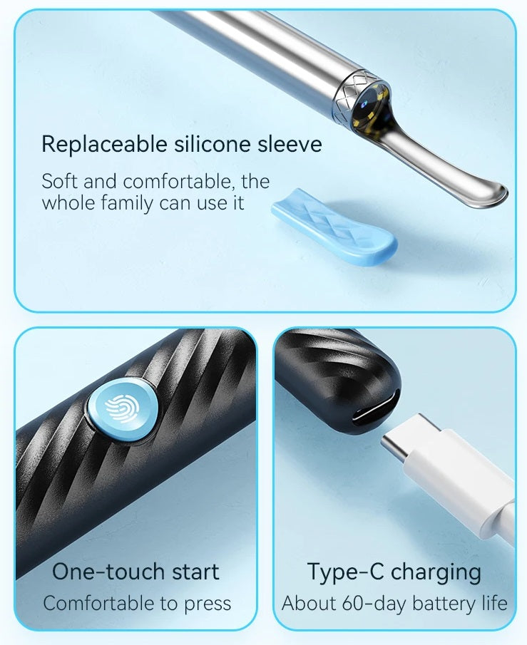 Trådløst Genopladeligt Ørerensesæt med Kamera