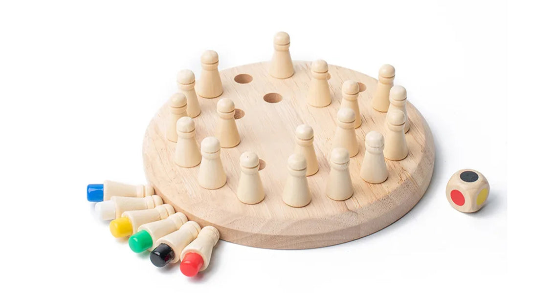- Pædagogisk legetøj: Træbræt, terning og 24 pinde i 6 farver. Lær farver og logik.