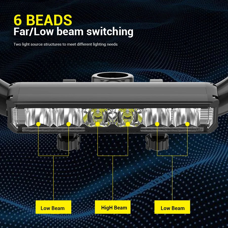- Ultra-lysstærk LED: 6 LED-perler af høj kvalitet med nær- og fjernlys for optimal synlighed.