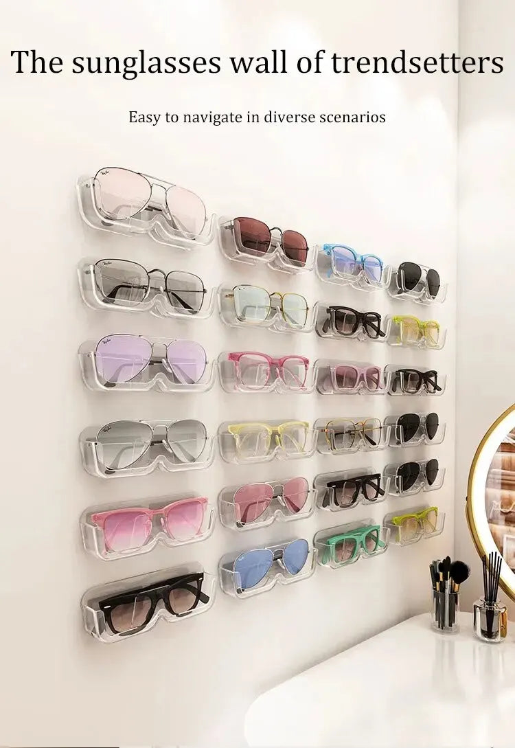 - Pladsbesparende design: Det vægmonterede stativ holder dine briller organiseret og let tilgængelige.