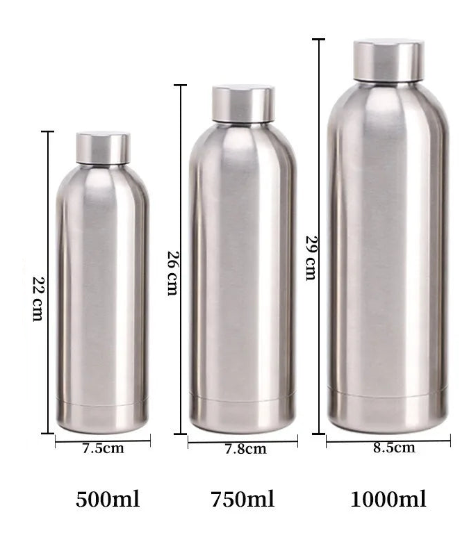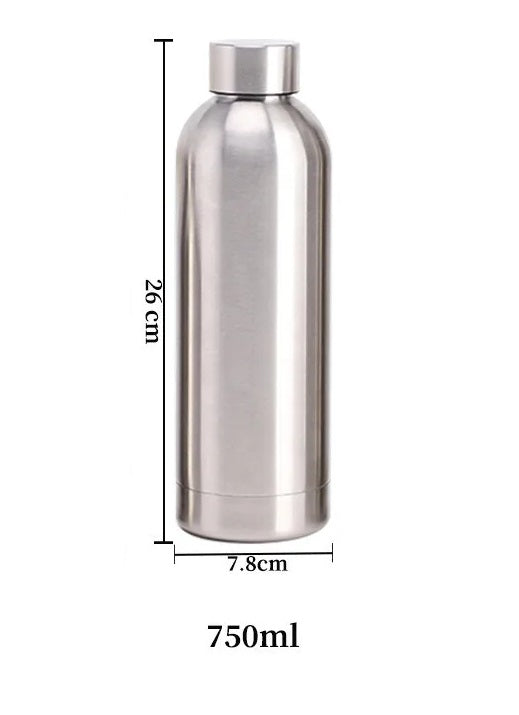Vandflaske i Rustfrit Stål til Sport og Rejser - 500, 750, 1000ml