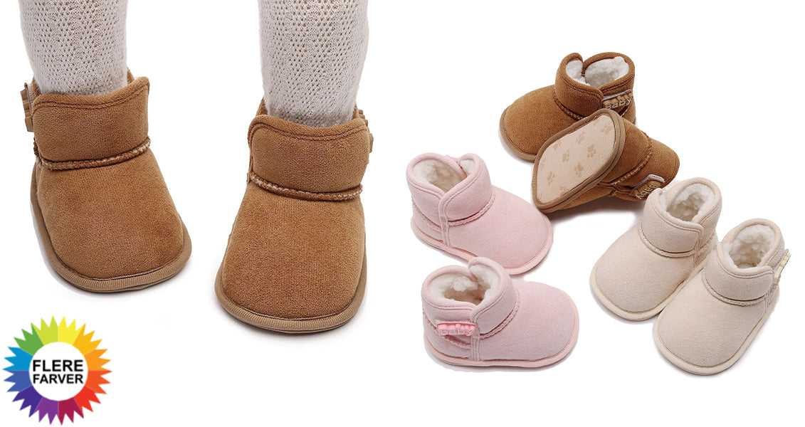 - Varm og hyggelig: Blødt fleecefor holder små fødder varme om vinteren.